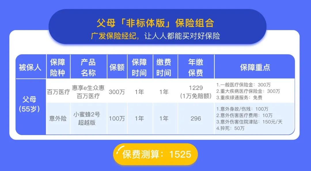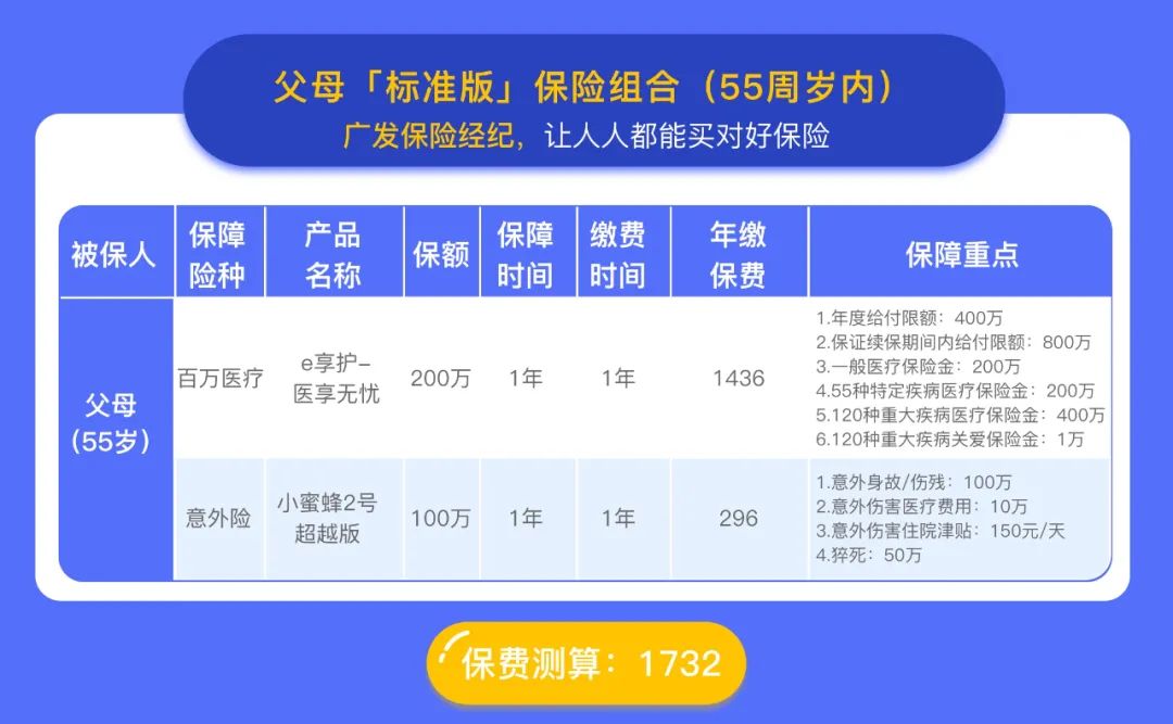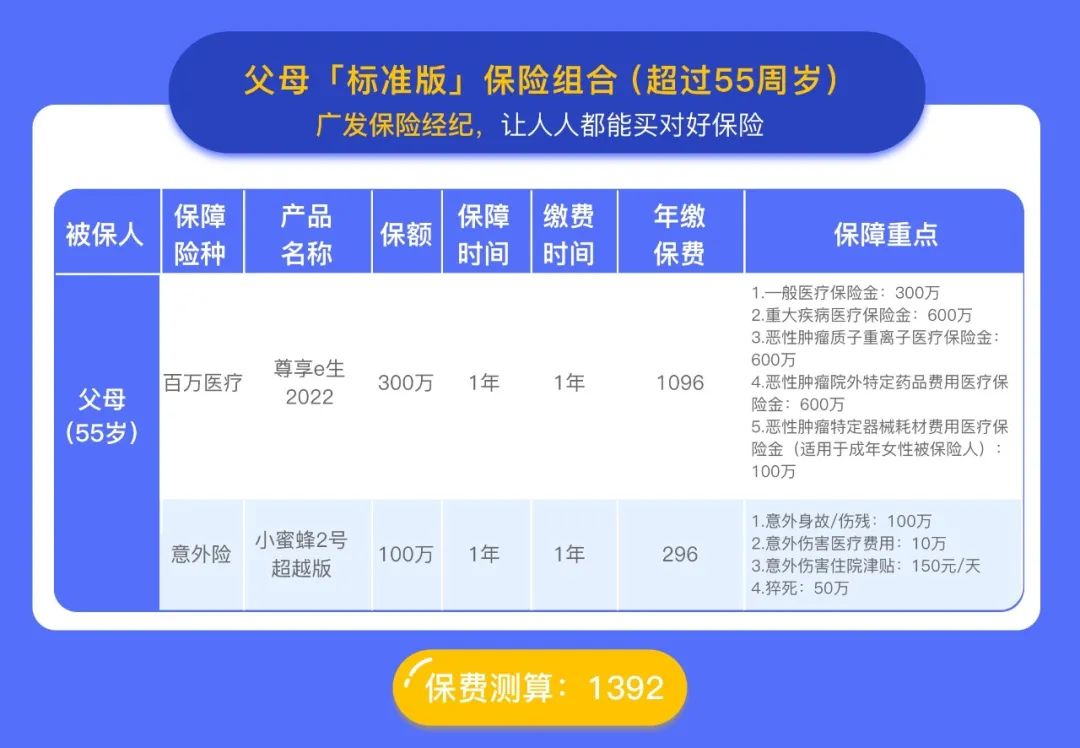 「标准版」组合:适合身体健康的父母,保障较全,价格适中