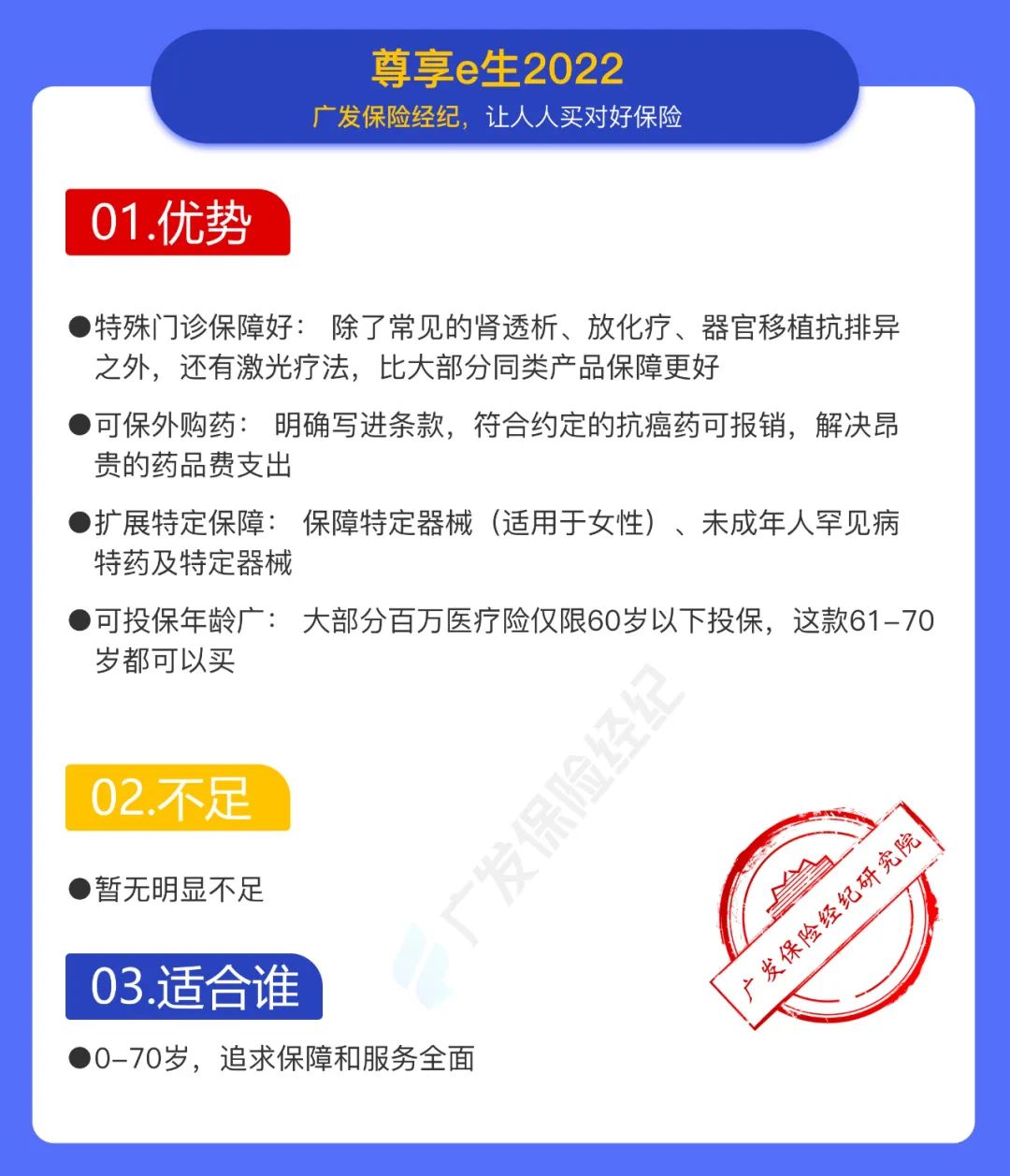 综合来看,尊享e生2022保障很不错,且投保年龄广。如果55岁以上,追求保障和服务全面、性价比较高的,建议考虑这款。