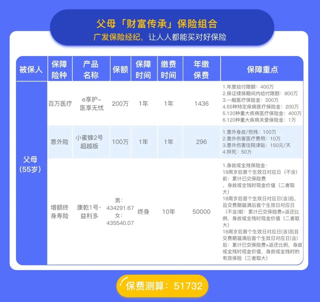 「财富传承」组合:适合预算多,身体健康,并具备一定养老规划的父母