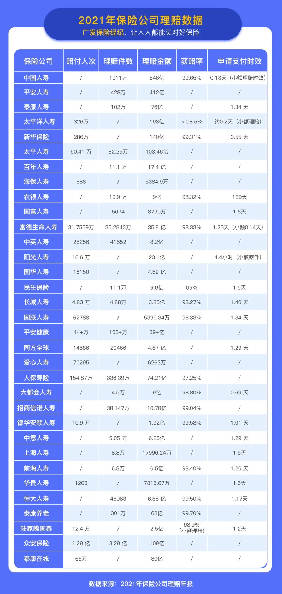 新年伊始,各家保险公司陆续发布2021年理赔年报,里面包含理赔金额、获赔率等数据。