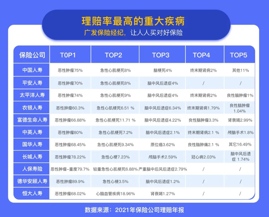 从保险公司的数据可以看到,理赔率最高的重大疾病都是癌症,占比基本都在60%以上,高的甚至可以达到90%以上。