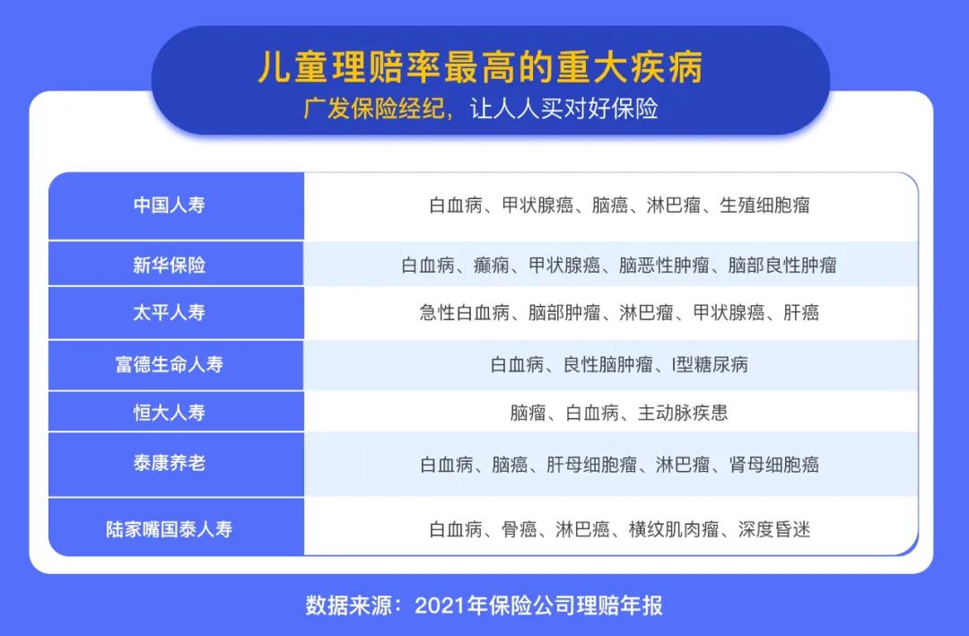 另外,部分保险公司还公布了未成年人的重疾理赔数据,排在第一位的基本都是“白血病”。