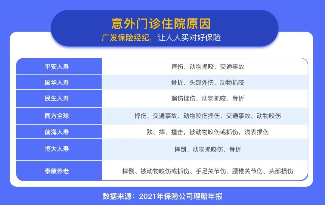 另外,意外医疗的出险原因中,摔伤、骨折、猫抓狗咬、交通事故高居前几位,平时生活中重点防范。