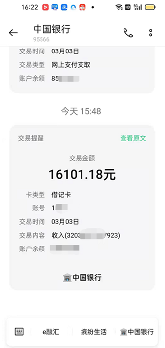 理赔款一到账,鞠女士就开心地跟我们分享了这个好消息。