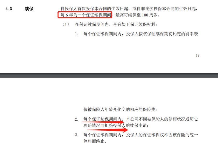 她买的这份百万医疗险,合同已经明确约定了,是保证6年续保的版本。