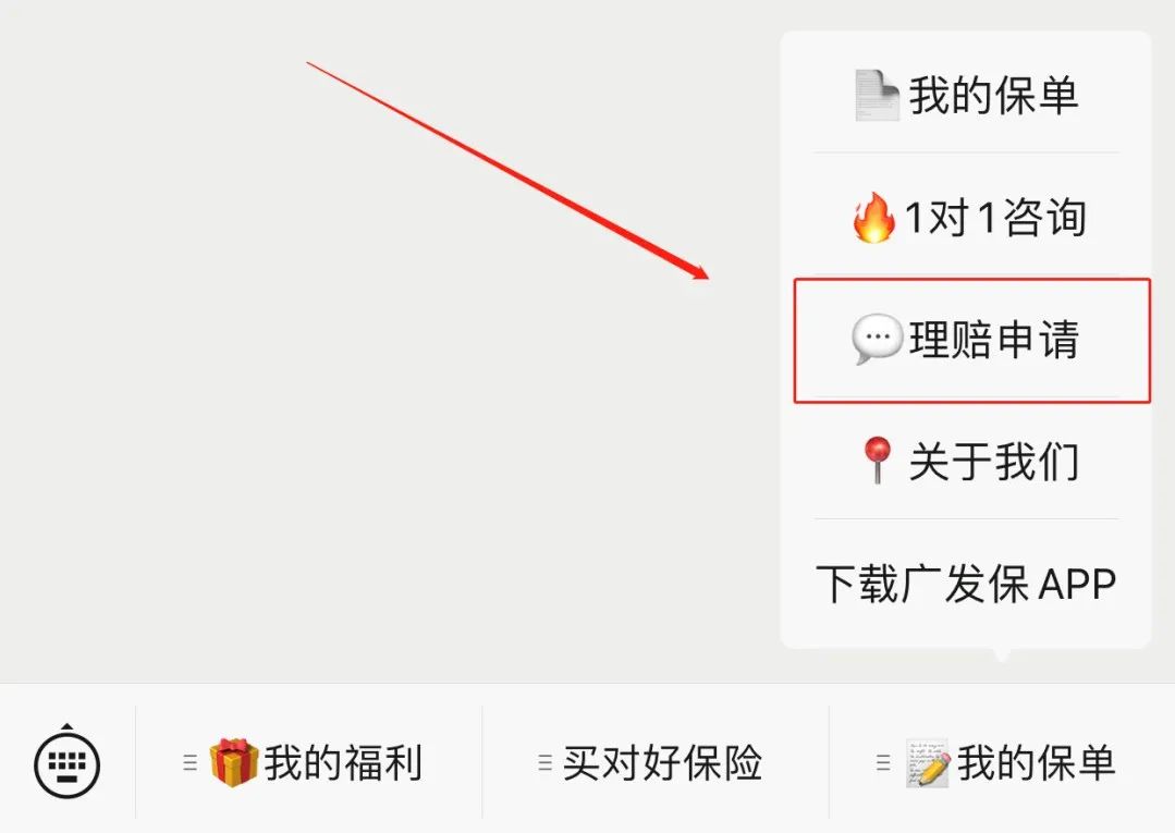 知心赔服务的入口,位于公众号「广发保险经纪」底部菜单栏【理赔申请】处,点击后即可报案。