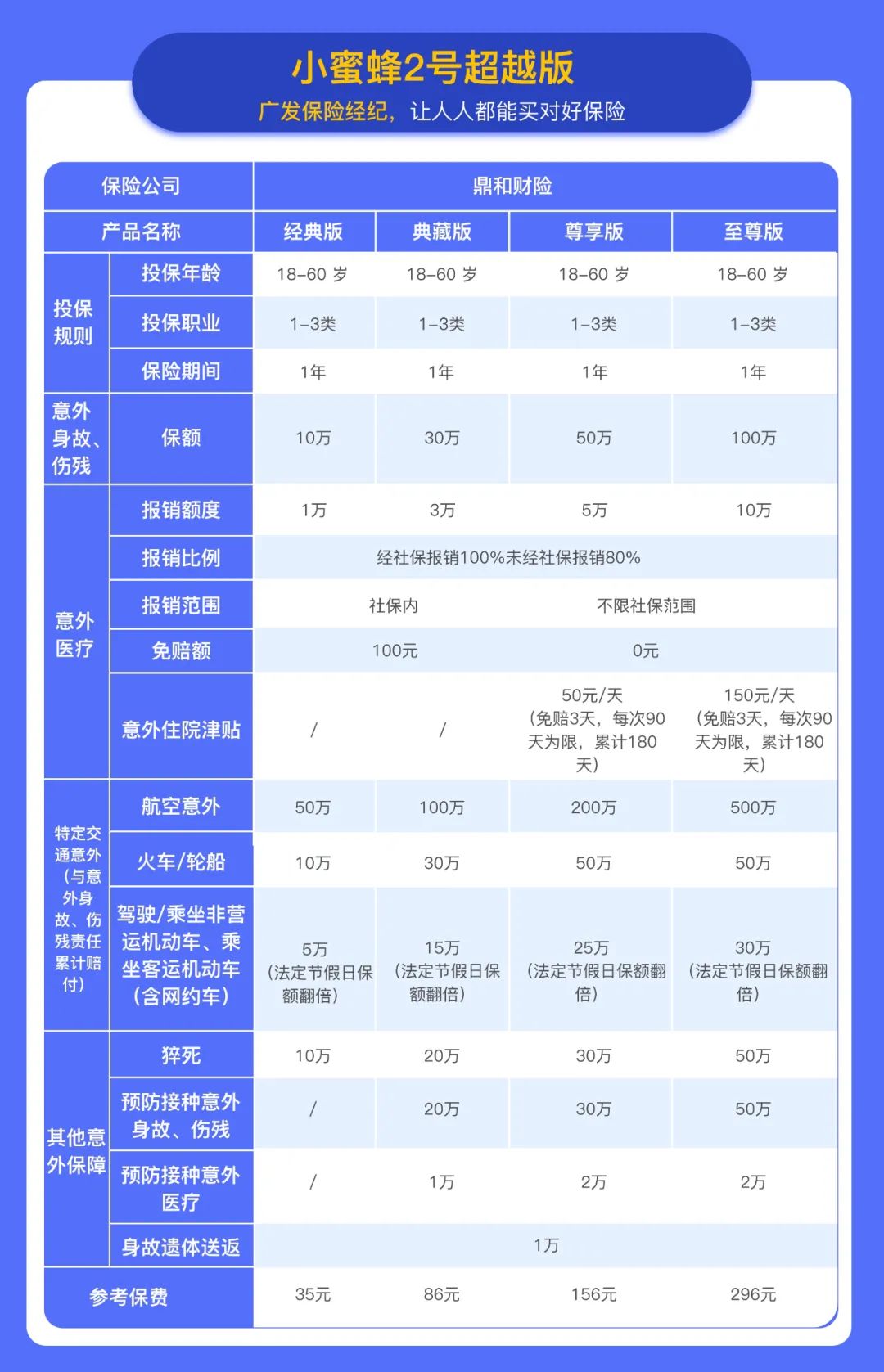 投保经典版,10万保额,一年最低仅需35元,投保至尊版,100万保额,一年最多296元,价格非常实惠。