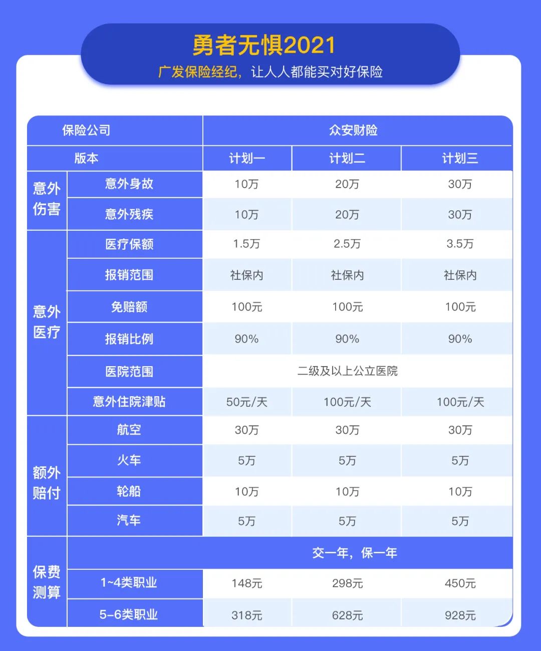 如果这类人群想要投保一份高性价比,保费又不贵的综合意外险,这款众安勇者无惧2021会是不错的选择。